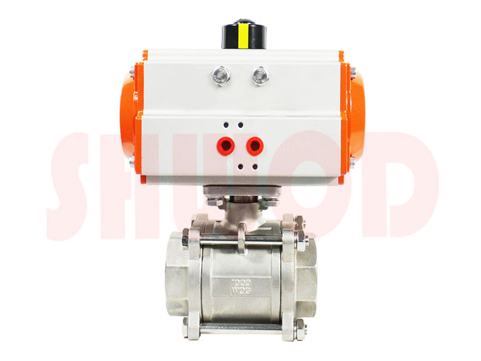 三片式球阀体积小,由三部分阀壳组成,通过四只较长螺栓从两端夹住中间阀体与气动球阀而成。其优点是维修拆卸管路螺纹,直接拆卸四只螺栓,阀门中间部分即可取出。适用于轻工机械体积小空间窄的场合。具有体积小、配套简单、流通能力大,特别适合于介质是粘稠,含颗粒,纤维性质的场合。气动丝扣球阀广泛应用于食品、环保、轻工、石油、造纸、化工、教学和科研设备、电力等行业的工业自动控制系统中。